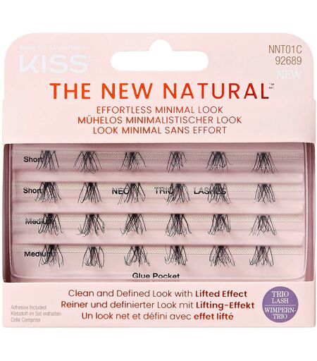KISS presenteert de nieuwe The New Natural wimpercollectie: ontwikkeld voor een geweldige "no-make-up" look. Met deze trend creëer je een totaal natuurlijke look met ongelijkmatige wimperpatronen. Perfecte imperfectie! Gemakkelijk aan te brengen, comfortabel om te dragen en een natuurlijke look. Het liftende effect van de wimpers zorgt voor langere en vollere wimpers, Verkrijgbaar als enkele verpakking, enkele verpakking met halve wimperlengte, trio verpakking en multipacks met 4 paar, Werkt het beste met KISS Strip Lash Adhesives of onze GLUEliner (elk afzonderlijk verkrijgbaar) Aanbrengen: Haal de wimper voorzichtig uit de verpakking. Plaats de wimpers op je natuurlijke wimpers om de pasvorm te controleren. Knip ze bij indien nodig. Breng KISS wimperlijm aan langs de wimperstrip en wacht 30 seconden tot de lijm kleverig wordt. Zodra de lijm niet langer vloeibaar maar kleverig is, plaats je de wimpers langs je natuurlijke wimperlijn. Houd ze op hun plaats en laat de lijm volledig drogen. Verwijderen: Bevochtig een wattenschijfje met make-up remover en druk het een paar seconden zachtjes op je ogen om de lijm los te maken. ...