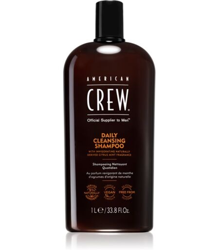 American Crew Daily Cleansing Shampoo, 1000 ml, Shampoos voor Mannen, De shampoo American Crew Daily Cleansing Shampoo reinigt effectief de hoofdhuid, reinigt het haar grondig en geeft het zijn natuurlijke schoonheid terug. Kenmerken: hydrateert intensief wast het haar en reinigt de hoofdhuid geeft het haar een mannelijke geur Het product is speciaal ontwikkeld voor mannen Ingrediënten: veganistisch product bevat geen siliconen bevat minstens 91% grondstoffen van natuurlijke oorsprong Hoe te gebruiken: Breng een redelijke hoeveelheid shampoo aan op je natte haar. Creëer schuim en spoel goed af. ...