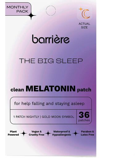 Deze patches geven melatonine direct af in de bloedbaan zodat het snel kan worden opgenomen. Ze reguleren het circadiane ritme van het lichaam en bevorderen een gezonde en rustgevende slaap, een gezond immuunsysteem en nog veel meer! Of je nu reist tussen verschillende tijdzones, worstelt met occasionele slapeloosheid of gewoon wat hulp nodig hebt om in slaap te vallen na een drukke dag, The Big Sleep is jouw slaapoplossing. Samengesteld met 100% plantaardige ingrediënten.Veganistisch en vrij van wreedheid.Waterbestendig.Hypoallergeen.Latex- en parabeenvrij. Deze verpakking bevat 36 minipatches, een maandvoorraad vitaminen voor jezelf en 6 extra patches om te delen met anderen! De patches hebben een goudkleurige maan- en sterrenprint. Reguleer het slaap-waakritme.Bevorder een diepere, meer ontspannen slaap.Reset je interne klok en verlicht jetlag. Toepassing: Was ter voorbereiding je handen zodat ze schoon zijn. Haal de pleister uit de transparante beschermfolie. Breng de pleister aan op een schone en droge huid. Draag de pleister gedurende 8-12 uur terwijl de vitaminen en adaptogenen vrijkomen via de huid. barrière Barrière is gecreëerd door oprichters Alexa Adams en Cleo Davis-Urman, voor wie mode een kunst van zelfexpressie is. Hun persoonlijke wellnessreis leidde hen tot het creëren van Barrière - wellnesspleisters die zijn ontworpen om de vitamines te leveren die je misschien mist in een formaat dat je waarschijnlijk nog nooit hebt geprobeerd. De ontwerpen zien er prachtig uit op de huid terwijl ze transdermaal een zeer effectieve mix van vitaminen, voedingsstoffen en adaptogenen afgeven. Elke patch geeft de vitamines transdermaal af via de huid en rechtstreeks in de bloedbaan, zodat ze beter worden opgenomen. De ingrediënten komen 8-12 uur lang duurzaam vrij. ...