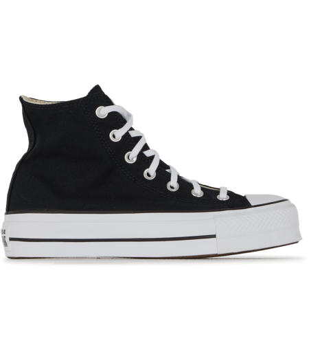 Bevestig je stijl met de zwarte en witte Converse Chuck Taylor All Star Lift Hi sneaker. Dit model verhoogt je silhouet op een gedurfde manier dankzij de verhoogde zool. Elegantie en durf combineren in deze moderne interpretatie van een klassieker, ideaal voor liefhebbers van mode en sneaker cultuur. ...