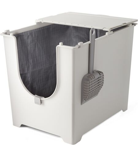 Ruim, hoge kattenbak met front-instap, met uitneembaar kunststof zeil, passende clips, haken schep ✔ Afmetingen: L 52 x B 40 x H 42,5 cm ✔ Makkelijk schoon te maken ✔ Klapbare deksel ...