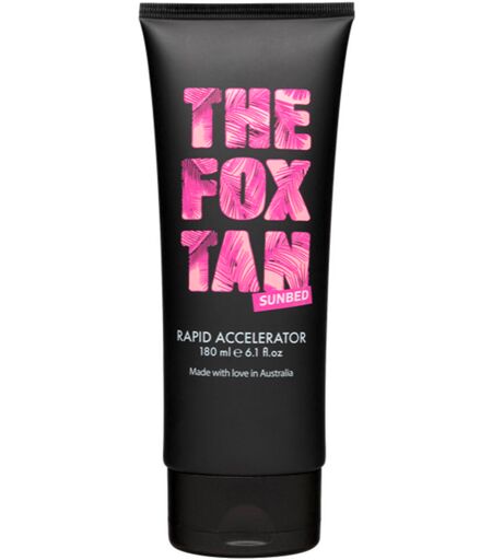 De bruiningsversneller Rapid Accelerator van The Fox Tan helpt je nog sneller bruin te worden! De huidgevoelige formule rekent af met bronzer of huidtintelingen. De exclusieve ingrediënten FoxComplex® en FoxComplexPlus™ stimuleren de melanineproductie in je lichaam, waardoor je intenser bruin wordt. De rijke ingrediënten dringen snel door in de huid en zorgen voor langdurige hydratatie, zodat u optimaal kunt genieten van uw zomerlook! De Rapid Accelerator is ontworpen om uw natuurlijke bruiningsproces te versnellen bij gebruik van een zonnebank. Kan worden gecombineerd met Rapid Tanning Elixir voor nog intensere resultaten. Bevat beta-caroteen, arganolie & jojoba-olie. Bevat geen zonnefilter. Toepassing: Breng de Accelerator minimaal 30 minuten voor blootstelling aan de zon aan. Schud de fles goed voor gebruik. Wrijf de lotion gelijkmatig over het lichaam en gezicht en laat het inwerken. Voor langdurig zonnebaden raden wij het gebruik van een zonnebrandcrème aan. ...