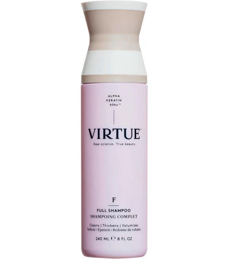 Meer volume voor fijn, zwak haar voor maximale beweging en veerkracht. Virtue® Full Shampoo reinigt uw haar en geeft het tegelijkertijd meer volume. Het lost overtollige olie op, maakt de haarwortels los en geeft volume aan elke haarlok voor een gewichtloze, langdurige volheid. Full Shampoo en Conditioner met Alpha Keratin 60ku® proteïne, de eerste in zijn soort, zijn speciaal geformuleerd om volume en dichtheid toe te voegen aan fijne en zwakke lokken. Deze uitzonderlijk lichte formules helpen volume op te bouwen van binnenuit en verbeteren de gezondheid van het haar na verloop van tijd. Gebruiksaanwijzing: Laat een halve portie shampoo tussen uw handpalmen schuimen. Aanbrengen op nat haar, laten schuimen tot een rijk schuim, inmasseren en uitspoelen. Breng vervolgens Full Conditioner aan, spoel grondig. ...