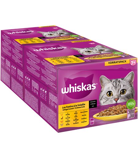 48 x 85 g Gevogelte in saus: Kip, Gevogelte, Eend, Kalkoen Senior Whiskas Kattenvoer