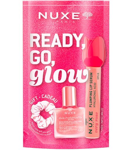 Stop dit trio in je tas - voor een stralende make-over voor elke gelegenheid*.Op kantoor, na het sporten of voor het uitgaan: Deze drie must-haves worden je trouwe schoonheidsmaatjes.Deze set bevat:1 x Huile Prodigieuse® Florale Or, 10 ml1 x Very Rose Lip Plumping Gloss, 8 ml1 x haarelastiekIn 3 eenvoudige stappen:1/ Voeg een vleugje goudglans toe aan je decolleté met Huile Prodigieuse® Florale Or en perfectioneer tegelijkertijd je make-up.2/ Verzorg je lippen met de Very Rose Lip Plumping Gloss, die direct volume geeft en tot 24 uur lang hydrateert**. De zachte smeltende textuur in combinatie met een aangenaam koud-warm effect zorgt voor gladdere, vollere lippen bij elke applicatie.3/ Geef je haar dat beetje extra met een van onze mysterieus glinsterende haarbandjes. Welke kleur denk je dat er in je doosje verstopt zit?Verzorgingsproducten - samengesteld en vervaardigd in Frankrijk.* Glimmend = stralend** Instrumentele test - 11 vrijwilligersToepassing: Huile Prodigieuse® Florale Or: Gebruik Huile Prodigieuse® Florale Or het hele jaar door voor gezicht, lichaam en haar. Goed schudden voor gebruik.Voor het gezicht: Breng een kleine hoeveelheid aan met een platte kwast of je vingertoppen - vooral op de gebieden die je wilt benadrukken: Jukbeenderen, neusbrug, voorhoofd en boven de wenkbrauwen.Voor het lichaam: Verwarm een paar druppels van de olie in je handpalmen, breng aan op de gewenste lichaamsdelen en masseer zachtjes in om een glinsterend effect te creëren.Voor het haar: breng een kleine hoeveelheid aan op de lengten en punten om het haar delicate, roségouden lichtreflecties te geven.Very Rose - Lip Plumping Gloss: Breng royaal aan op de lippen met de applicator. Breng zo vaak als nodig opnieuw aan gedurende de dag en geniet van het tintelende samenspel van kalmerende warmte en verfrissende koelte. Alleen geschikt voor de lippen.Haarband: Laat je verrassen door een van de drie mysterieus glinsterende kleuren. Een stijlvol accessoire dat je kapsel net dat beetje extra geeft - elegant, praktisch en een echte blikvanger. ...