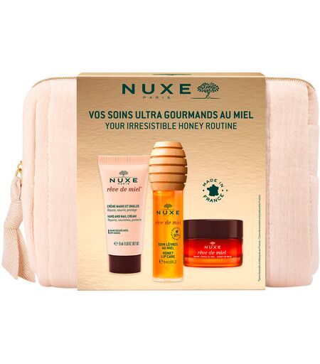 Dompel jezelf onder in het rustgevende genot van de Rêve de Miel-lijn met deze voedende verzorgingsproducten voor lippen en handen. Deze set bevat: 1 x Rêve de Miel hand- en nagelcrème, 15 ml1 x Rêve de Miel lippenbalsem met honing, 15 g1 x Rêve de Miel lippenbalsem met honing, 10 ml Toepassing: Rêve de Miel hand- en nagelcrème: Breng de hand- en nagelcrème aan, met speciale aandacht voor de vingernagels.Rêve de Miel lippenbalsem met honing: Neem een kleine hoeveelheid van de balsem met je vinger en breng zachtjes aan op de lippen en lipcontour.Rêve de Miel lippenbalsem met honing: Breng het product met de applicator aan op de lippen. Herhaal het aanbrengen zo vaak als nodig gedurende de dag. ...