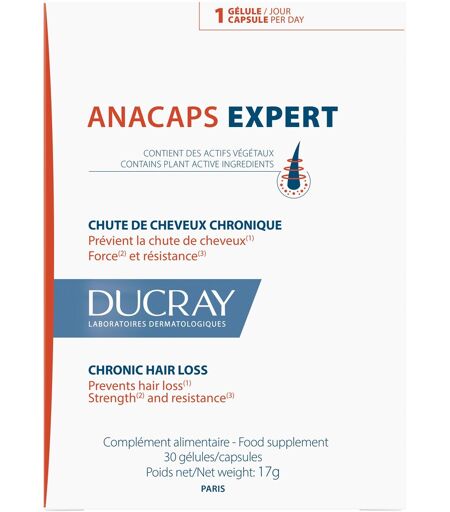 Ducray Anacaps Expert Food Supplement for Chronic Hair Loss 30 caps.