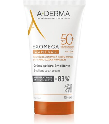 A-Derma Exomega Control Emollient Solar Cream Beschermende Crème voor Gezicht en Lichaam SPF 50+ 150 ml