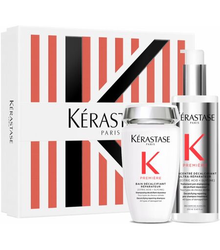 Kérastase Première, , Cosmetische sets voor Vrouwen , Inhoud van de set: Kérastase Première Concentré Décalcifiant Ultra-Réparateur Pre- Shampoo Verzorging voor Beschadigd Haar 250 ml Kérastase Première Bain Décalcifiant Réparateur shampookuur voor Beschadigd Haar 250 ml Kenmerken: versterkt de haarvezels wast het haar en reinigt de hoofdhuid regenereert en voedt het haar verzorgt de lengtes van verzwakt haar laat het haar zacht achter Hoe te gebruiken: Gebruik elk product uit de cosmeticaset volgens de gebruiksaanwijzing. ...