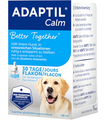 Synthetische replicatie van kalmerend feromoon DAP ® van teefjes, ondersteunt het welzijn en de gemoedsrust voor zachte gewenning aan nieuwe situaties, geschikt voor alle honden van elke leeftijd! ...