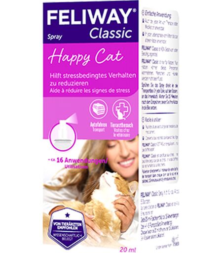 Anti-stress spray voor katten. Verspreidt het "geluksferomoon" van katten. Houdt je kat rustig in een nieuwe omgeving en voorkomt plassen op ongewenste plekken. ...