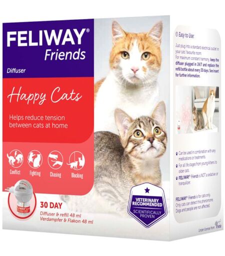 Set uit verdamper en flacon (48 ml), bevat een synthetische vorm van een feromoon van de moederkat, helpt conflicten tussen katten te verzachten, snel merkbaar effect ...