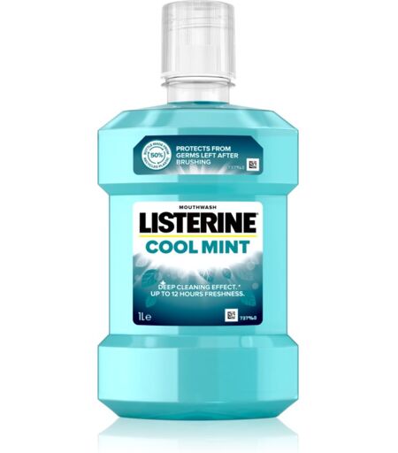 Listerine Cool Mint, 1000 ml, Mondwater & Spray Unisex, Het mondwater Listerine Cool Mint verfrist niet alleen de adem maar bestrijdt ook tandplak en helpt het tandvlees en de tanden gezond te houden. Kenmerken: bescherming tegen tandplak behoudt gezond tandvlees vernietigt bacteriën zorgt voor frisse adem Hoe te gebruiken: Spoel na het reinigen van de tanden de mond met mondwater gedurende de tijd die aangegeven staat op de verpakking en spuug vervolgens uit. ...