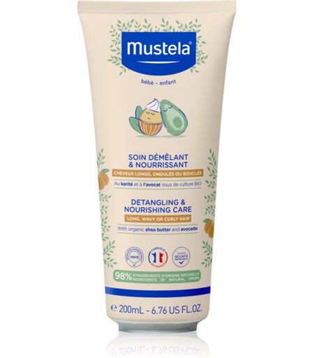 Mustela Detangling & Nourishing, 200 ml, Kindershampoo voor Kids, Het product vergemakkelijkt het kammen van het fijne babyhaar. Kenmerken: wast het haar en reinigt de hoofdhuid regenereert en voedt het haar Ingrediënten: bevat minstens 98% grondstoffen van natuurlijke oorsprong sheabutter – voedt, houdt het nodige vocht in de huid vast, maakt de huid zacht en soepel, biedt bescherming tegen uitdroging en schadelijke omgevingsfactoren avocado-olie – hydrateert, voedt en versterkt, helpt beschadigd haar opnieuw mooi worden, bevordert de regeneratie Hoe te gebruiken: Breng een redelijke hoeveelheid shampoo aan op je natte haar. Creëer schuim en spoel goed af. ...