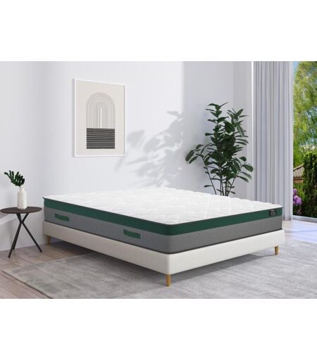 Zijn pluspunt? Een rand van schuim voor een langere levensduur! Details Technologie (kern): Pocketveren Aantal veren (matras): 800 Technologie (ontvangst): Comfortschuim Densiteit (afdeklaag): 20 kg/m³ Ligcomfort: Stevig Binnenkern matras: Ovatta Densiteit (binnenkern): 100 g/m 2 Tijk (stof): Polyester Omkeerbaar winter en zomerzijde, 4 draaggrepen Kleur (tint): Wit Materiaal: 100 % Polyester Matrasmaat: 160 x 200 cm Aantal plaatsen: 2 plaatsen Ondersteuning: Stevig Onafhankelijkheid beddengoed: 3 Behandeling: Antibacteriële behandeling Garantie: 5 jaar Gecomprimeerd/ingerold: ja Afmetingen Lengte: 200 cm Hoogte: 22 cm Diepte: 160 cm Matrasdikte (cm): 22 cm Hoogte binnenkern: 17 cm Levering De levertijd van dit product zal worden bevestigd in de winkelwagen. Pakket Pakket nummer 1: Lengte 170 cm, Breedte 32 cm, Hoogte 32 cm, Gewicht 43 kg,  ...