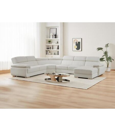 Unique XXL zevenzitsbank van leer ELEVANTO - wit - hoek rechts