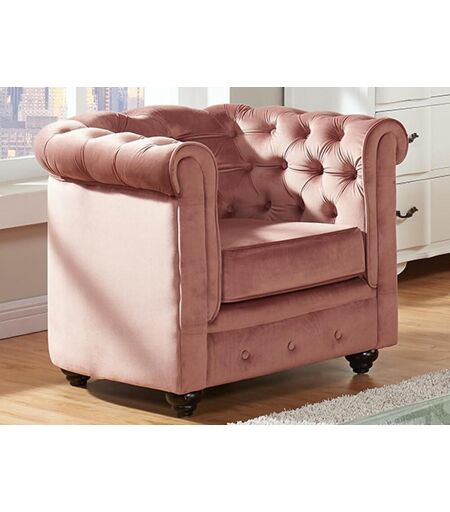 Unique Fauteuil CHESTERFIELD - velours - pastelroze