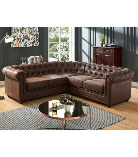 Unique Hoekbank CHESTERFIELD van microvezel met verouderde look