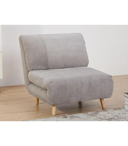 Unique Eenpersoons slaapbank van fluweel ribstof PALULA - Lichtgrijs