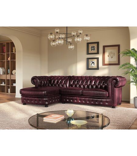 Unique Hoekbank van 100% buffelleer Chesterfield BRENTON - Kersenrood - Hoek links