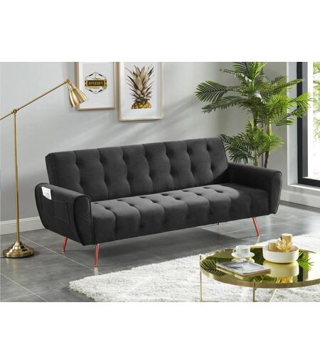 Unique Driezits-slaapbank van fluweel POLANI - Antraciet