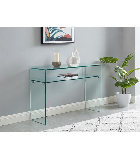 De STILEOS meubels charmeren met hun moderne en elegante lijnen. Deze sidetable is gemaakt van 12 mm dik gebogen gehard glas. Hij is robuust en ontworpen om de tand des tijds te doorstaan, en geeft tegelijk een lichte en heldere toets aan uw huis. De nis  van deze sidetable geeft u extra opbergruimte. Details Kleur (tint): Transparant Materiaal: Gehard glas Soort kast: 1 nis Installatietype: Om op te zetten Maximale belasting: 20 kg Meubel om zelf in elkaar te zetten Maximale belasting van het blad: 50 kg  Maximale belasting van de nis: 20 kg Afmetingen Lengte: 110 cm Hoogte: 75 cm Diepte: 35 cm Nis: L106,9 x D34 cm Levering De levertijd van dit product zal worden bevestigd in de winkelwagen. Pakket Pakket nummer 1: Lengte 117 cm, Breedte 82 cm, Hoogte 45 cm, Gewicht 44 kg,  ...