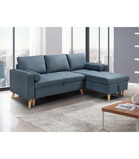 Unique Uitklapbare hoekslaapbank in petrole blauwe stof met opbergruimte en omkeerbare hoek - KORI