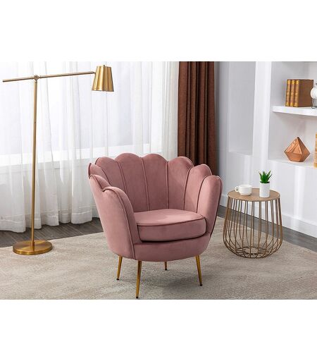 - Een retro-design binnen de huidige trend Met zijn originele en trendy schelpvorm geven de zitbank en fauteuil DANDELION een moderne en eigentijdse uitstraling aan uw kamer. - Verzorgde afwerkingen Elk detail van deze zitbanken en fauteuils is bestudeerd om je maximaal comfort en een ongeëvenaarde look te geven. Je zult dol zijn op de elegant bewerkte biezen op de rugleuning en de vergulde metalen poten die een trendy touch toevoegen.  - Trendy kleuren De zitbank en fauteuil DANDELION zijn verkrijgbaar in verschillende kleuren en zijn zeer verleidelijk om op elke stijl aan te sluiten. Of u nu de voorkeur geeft aan een neutrale sfeer of kleurrijk, er is voor elk wat wils! Details Kleur (tint): Roze Materiaal: 100 % Polyester, Fluweel Materiaal (poten): Metaal Structuur: Multiplex, Metaal Aantal plaatsen: 1 plaats Vulling van de zitting: Polyurethaanschuim Dichtheid zitting: 28 kg/m³ Vering van de zitting: Gekruiste elastische bandjes Vulling van de rugleuning: Mousse polyuréthane Dichtheid rugleuning: 26 kg/m³ Vering van de rugleuning: Gekruiste elastische bandjes Met armleuningen Productlijn: Made for design Maximale belasting: 120 kg Geleverd gemonteerd (behalve poten en/of handvatten) Afmetingen Lengte: 78 cm Hoogte: 76.5 cm Diepte: 75 cm Voethoogte: 24 cm Zithoogte: 45 cm Zitdiepte: 56 cm Levering De levertijd van dit product zal worden bevestigd in de winkelwagen. Pakket Pakket nummer 1: Lengte 77 cm, Breedte 72 cm, Hoogte 55 cm, Gewicht 12 kg,  ...
