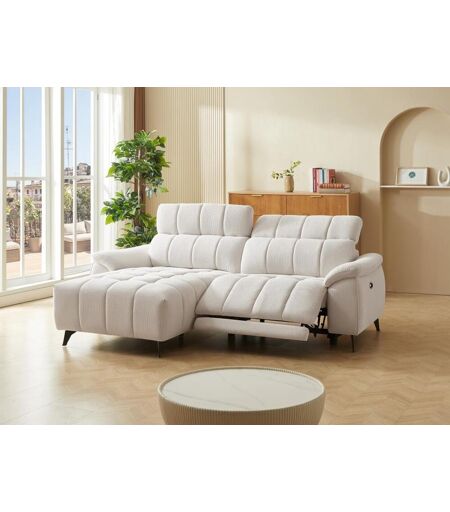 Unique Elektrische relaxhoekbank met hoek links van beige stof met textuur CELTIMO