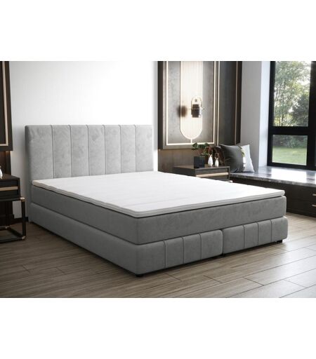Unique Complete set met boxspring en hoofdbord + bedbodem + matras + topmatras - 180 x 200 cm - Fluweel - Lichtgrijs - HIDA van YSMÉE