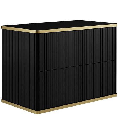 Unique Geribbeld wastafelmeubel met goudkleurige randen - Zwart - L80 cm - KELIZA