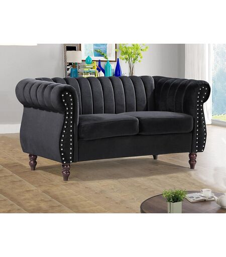 Unique 2-persoons zwarte fluwelen chesterfield zitbank TRUMBO