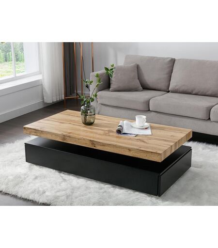 Unique Salontafel met 2 lades van mdf - Zwart en licht naturel - FELIX