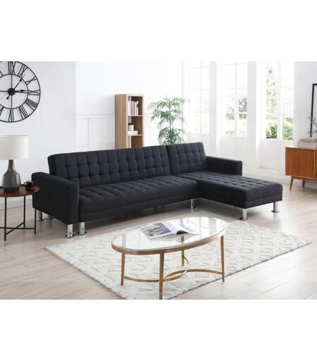 Unique Omkeerbare hoekslaapbank van zwarte stof WILLIS II