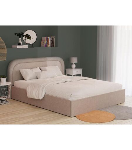 Unique Bed met opbergruimte 160 x 200 cm - Boucléstof - Beige + matras - FIREZA