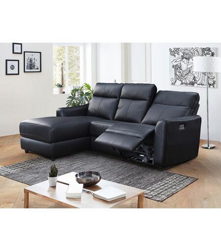 Unique Elektrische relaxhoekbank met hoek links van zwart leer ISPICA