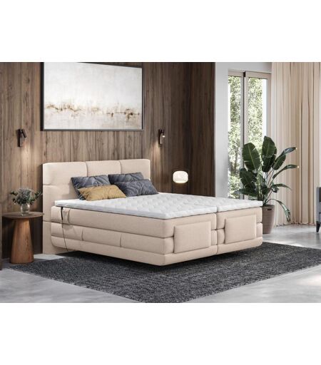 Unique Set boxspringbed met hoofdbord met capitons + elektrische relaxbedbodems + matras + dekmatras - 2 x 90 x 200 cm - Beige - LODI van PALACIO