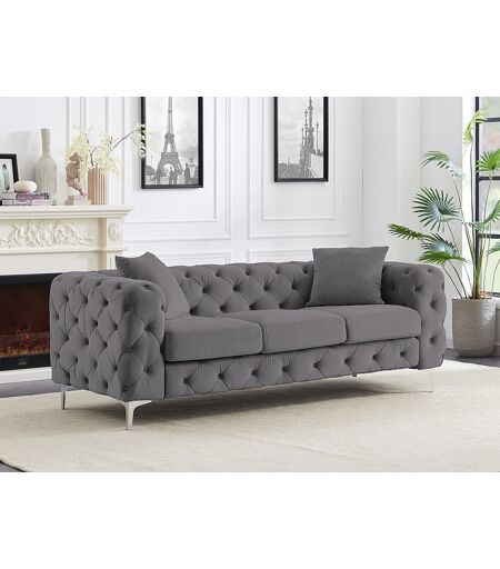 Unique Driezits-Chesterfield-bank van antracietgrijs velours EDWINA