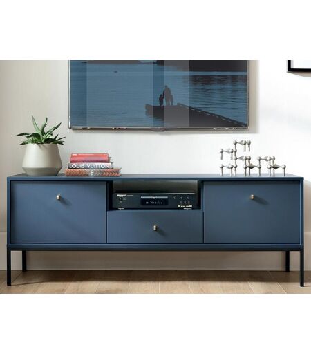 Unique TV-meubel BOGDAN - 2 deuren, 1 lade en 1 nis - Blauw