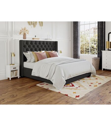 Unique Tweepersoonsbed MASSIMO gewatteerd met capitons - 160 x 200 cm - Grijs - Stof