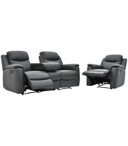 Unique Driezits relaxbank en relaxfauteuil EVASION van leer - grijs