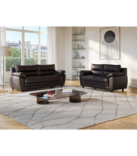 Unique Driezits- en tweezitsbank MANOA van kunstleer - bruin