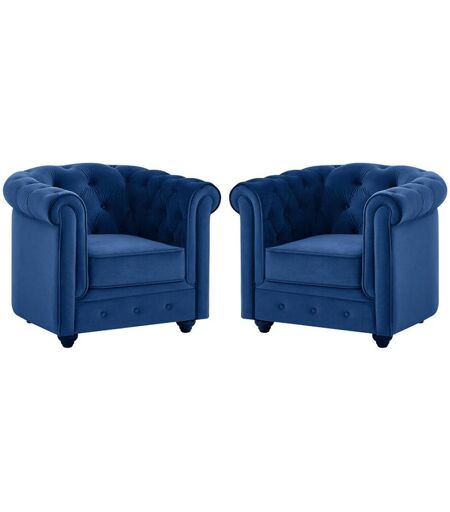 Unique Set van 2 fauteuils CHESTERFIELD - velours - koningsblauw