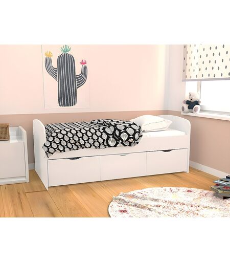 Unique Bed LOUANE met 2 lades en 1 opbergkoffer - 90x190cm - Wit + matras