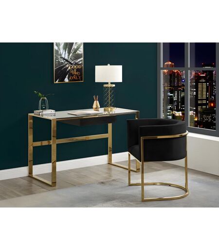 De stoel PERIA, een meesterstuk De stoel PERIA geeft uw interieur een subtiele, charmante en originele uitstraling dankzij de combinatie van het materiaal en de kleuren van zijn zitting, en de poten die er perfect bij passen. De stoel PERIA, hoogwaardige afwerkingen De stoel PERIA heeft een ondersteunende en gevulde zitting. Het zachte velours biedt comfort tijdens lange gesprekken en een goede maaltijd. Zijn poot van goudkleurig verchroomd roestvrij staal ondersteunt de zitting met een origineel design met ronde vormen en loopt van de achterkant van de stoel tot aan de grond. De stoel PERIA, voor welk type interieur?  De stoel PERIA past zich perfect aan een chic interieur aan en geeft uw kamer een art-decostijl. U kunt hem bijvoorbeeld combineren met een marmeren of glazen tafel om een vintage-sfeer te creëren. Uitsluitend verkocht per stuk of per set van 2 stoelen van dezelfde kleur. 2 x Stoel PERIA Details Kleur (tint): Zwart Materiaal: 100 % Polyester, Fluweel Materiaal (poten): Roestvrij staal Vulling van de zitting: Hoge resistentie polyurethaanschuim Dichtheid zitting: 20 kg/m³ Vulling van de rugleuning: Mousse polyuréthane haute résilience Dichtheid rugleuning: 17 kg/m³ Met armleuningen Gebruik: Binnen Productlijn: Prestige Corner Maximale belasting: 120 kg Geleverd gemonteerd Afmetingen Lengte: 60 cm Hoogte: 76 cm Diepte: 56.5 cm Zithoogte: 47 cm Zitdiepte: 44 cm Hoogte rugleuning: 29 cm Levering De levertijd van dit product zal worden bevestigd in de winkelwagen. Wij raden u aan om bij de levering goed het aantal geleverde pakketten te controleren. Pakket 2 x Stoel PERIA 2 x Pakket nummer 1: Lengte 78 cm, Breedte 62 cm, Hoogte 60 cm, Gewicht 12 kg,  ...