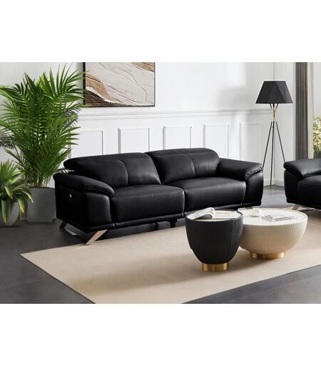 Unique 3-zits elektrische bank van zwart koeienhuid AZIDEE II