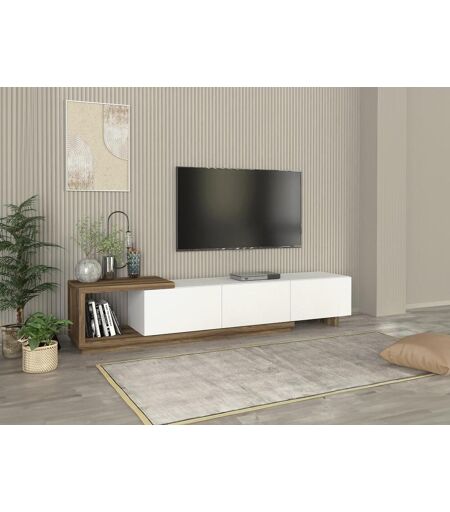 Unique Tv-meubel met 3 lades en 1 nis - Wit en naturel - DUKIAN