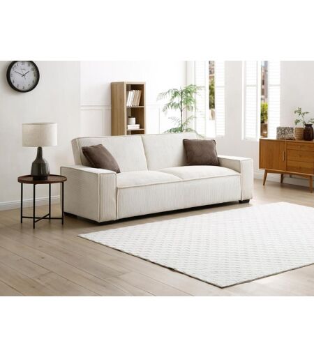 Unique Uitschuifbare driezitsslaapbank van beige ribfluweel SEKOTA