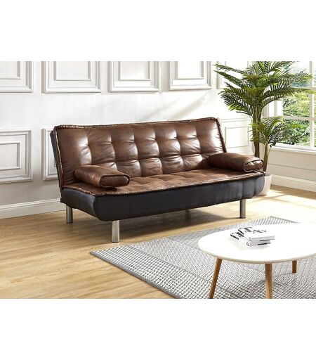 Unique Driezits-slaapbank van verouderd bruin microvezel MISHAN II