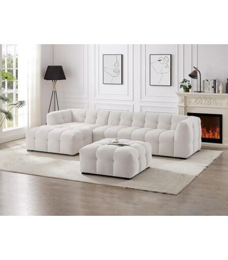 Hoekslaapbank met hoek links en poef van gechineerde beige stof DILOME van Pascal Morabito